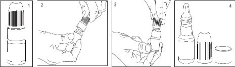- Kapağı halka olmadan tekrar kapatınız. Kapak içerisindeki plastik pin şişenin ucunu delecektir (bkz. Resim 5).