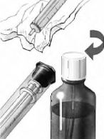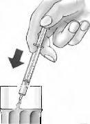 4. Eğer şırıngada büyük hava kabarcıkları oluşmuşsa şırıngayı şişeden uzaklaştırmadan önce pistonu birkaç kez ileri ve geri hareket ettirerek bu kabarcıkların gitmesini sağlayınız. Eğer küçük hava kabarcıkları kalmışsa çok önemli değildir, dozlamayı etkilemez.