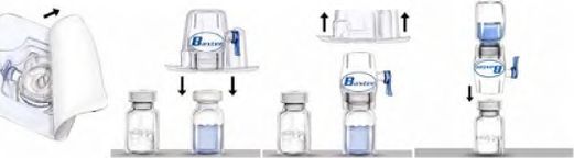 - Sulandırma için yalnız enjeksiyon için sterilize su ve ambalajdan çıkan sulandırma cihazını kullanınız. Uygulama için luer enjektörü gereklidir.