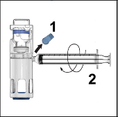 Çözücünün aktarımının tamamlandığını doğrulayınız. Tüm materyal eriyene kadar yavaşça döndürünüz (Şekil 3). Tozun tamamen çözündüğünden emin olunuz, aksi halde sulandırılan çözeltilerin tümü cihaz filtresinden geçmeyecektir. Ürün hızlı bir şekilde çözünür (genellikle 1 dakikadan az). Sulandırıldıktan sonra çözelti berrak, renksiz ve parçacıklardan arındırılmış olmalıdır.