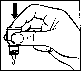 Şişeyi, başparmak ve diğer parmaklarınız arasında ucu aşağı bakacak şekilde ters tutunuz.