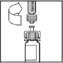 Flakonu düz bir zemin üzerine yerleştiriniz. Şırınganın ucunu adaptörün açık kısmından içeri doğru iterek çözücü içeren şırınganın flakona bağlanmasını sağlayınız. Bağlantı tam olarak sağlanana kadar şırıngayı sıkıca itiniz ve döndürünüz. (Bakınız şekil 6)