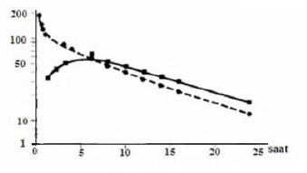 1 g Seftriakson verilişinden sonra konsantrasyon (mg/mL)