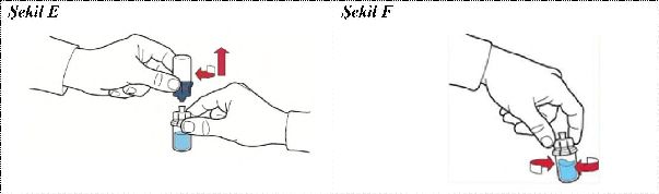11. Toz etkin madde tamamen çözününceye kadar flakonu yavaşça çalkalayınız (Şekil F);