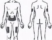 • Üst bacak, karın (göbeğin 5 cm çevresi dışında) veya üst kolun arka tarafında bir enjeksiyon bölgesi seçiniz.