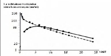 Emilim: İntramüsküler, tek doz 1 g’lık uygulamadan sonraki 2-3 saat içinde ulaşılan maksimum plazma konsantrasyonu 81 mg/litre’dir.