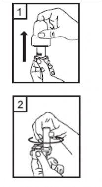 İnhalasyon cihazını açın, baş aşağı çevirin ve yavaşça dibine vurun.