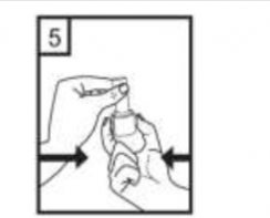 | 5-Tozu kapsülden serbestlemek için: şekilde dik olarak tutunuz. Not: Kapsül bu aşamada parçalanabilir ve küçük jelatin parçacıkları ağzınıza ya da boğazınıza gelebilir. Fakat jelatin yenebilir nitelikte olduğu için zararlı değildir. |