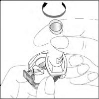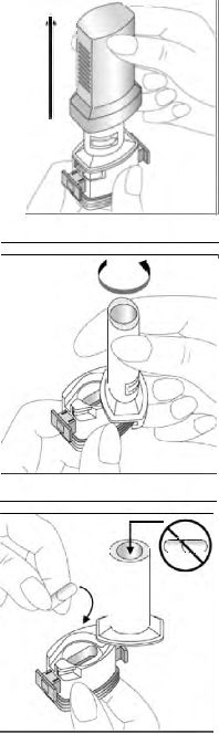 İnhalerin tabanını sıkıca tutup, açmak için ağızlığı üzerinde yer alan ok işareti yönünde döndürünüz.