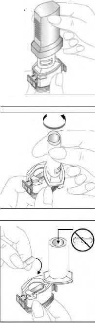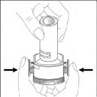 İnhalerin tabanını sıkıca tutup, açmak için ağızlığı üzerinde yer alan ok işareti yönünde döndürünüz.