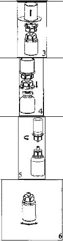 4. Toz flakonunu düz ve sağlam bir zemin üzerine yerleştiriniz. Çözücü flakonunu takılı olan Mix2Vial setiyle birlikte ters çevirin ve saydam adaptör ucunun tepe noktasını, toz flakonun stoperinden aşağıya doğru bastırınız. Çözücü otomatik olarak toz flakonunun içine akacaktır.