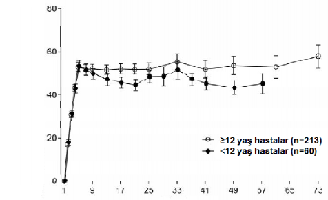 Erişkinlerde/adölesanlarda (≥ 12 yaş) ve çocuklarda (< 12 yaş) haftada bir kez doz uygulamayı (4 hafta boyunca 3 mg/kg/hafta ve bunu takiben 1,5 mg/kg/hafta) takiben benzer farmakokinetik profilleri gözlenmiştir (bkz. Şekil 1).