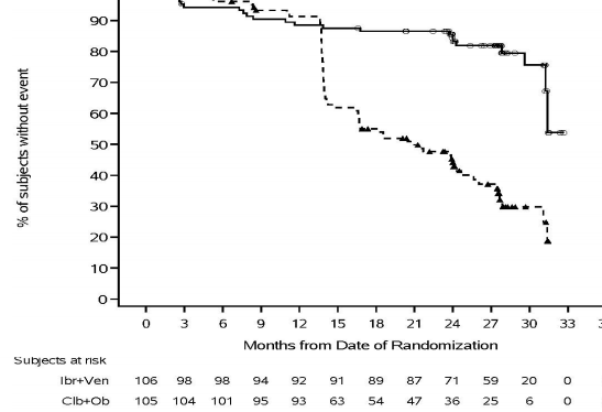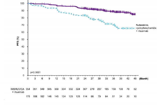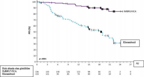 IMBRUVICA + venetoklaksın tedavi etkisi, 0,23 PFS HR [%95 GA (0,13, 0,41)] ile yüksek riskli KLL popülasyonunda (TP53 mutasyonu, del 11q veya mutasyona uğramamış IGHV) ile tutarlıdır.