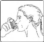 5. Ağzınızdan yavaş ve derin nefes alınız ve aynı anda bir puf doz boşaltmak için inhalasyon spreyinizin üst kısmına basınız.