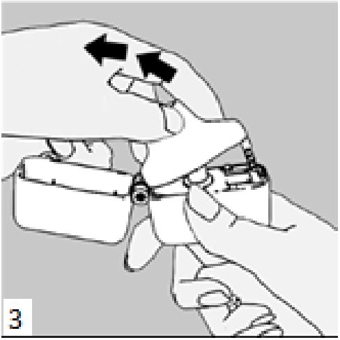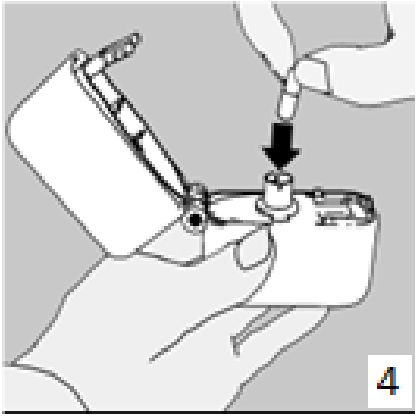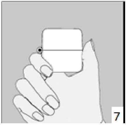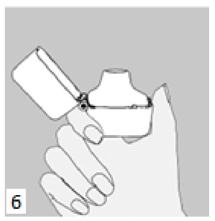 6. ve 7. İnhalasyon cihazını ağızlık parçası yukarıda olacak şekilde tutunuz ve kapağı bastırarak kapatınız.