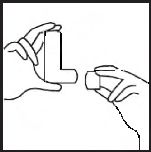3. Vücut duruşu nasıl olursa olsun, tüpü alt kısmı yukarı bakacak biçimde dikey halde tutunuz ve ağızlığı dişlerinizin arasına koyunuz ve dudaklarınızı sıkıca kapatınız.