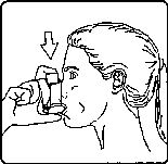5. Ağzınızdan yavaş ve derin nefes alınız ve aynı anda bir puf doz boşaltmak için inhalasyon spreyinizin üst kısmına basımz.