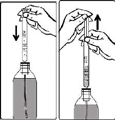 Şırınganın uç kısmım tıpanın ağız kısmına sokun (Şekil 5). Reçetelenmiş miktarda solüsyonu şişeden çekin (Şekil 6).