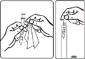 Kullandıktan sonra şırınganın dış yüzeyini temiz bir peçeteyle silin ve şırıngayı muhafazası içine yerleştirin (Şekil 9).