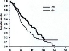 Sağ kalım süresi (ay) Medyan(m) Medyan için %95 GA TO TO için %95 GA Non-inferiorite p-değeri (TO) | (n=283) (n=288) 8.3 7.9 (7.0-9.4) (6.3-9.2) 0.99 (.82-1.20) .226 | |