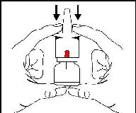 ■ Nazal spreyi dik olarak bir ya da iki elinizle tutunuz ve pompaya kuvvetlice 3 kez basınız.