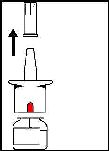 Koruyucu kapağın çıkarılmasından sonra başınızı hafif öne eğiniz ve burunluğu burun deliklerinizden birine yerleştiriniz. Nazal spreyi resimde görüldüğü gibi mümkün olduğunca dik tutmaya çalışınız. Pompayı kuvvetlice