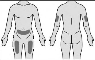 • Kemer yada beli saran kıyafetlerden tahriş olabilen bölgelere enjeksiyon yapmayınız. Benler, yara izi, morluk veya cildin hassas, kızarık, sert veya kesik olduğu bölgelere enjeksiyon yapmayınız.