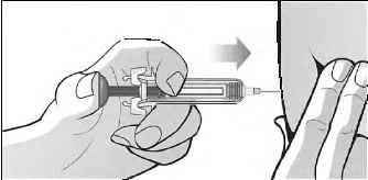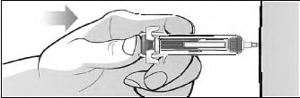Şırıngayı bir kalem gibi tutarak iğneyi cilde "dart oku atmaya benzer’ seri bir hareketle batırınız. Şırıngayı işaret parmağı ve orta parmakla tutarken, ilacın tamamı enjekte edilene kadar baş parmağınızla pistonu yavaşça itiniz.