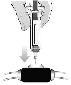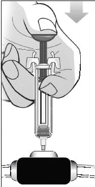 Şırıngayı işaret parmağı ve orta parmakla tutarken, ilacın tamamı enjekte edilene kadar baş parmağınızla pistonu yavaşça itiniz. Kullanıma hazır şırıngayı venöz porttan pistonu BIRAKMADAN çıkarınız.