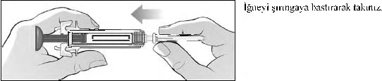 Şırıngayı tek elle sıkı tutunuz ve iğnenin koruyuçuşunu diğer elle çıkarınız. İğne koruyucusunu delinmelere karşı dayanıklı bir kaba veya kesici aletlerin imhası için uygun bir kaba atınız.