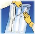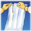 Torba, üst kısmından (askının bulunduğu kenar) başlayarak katlanır. Separatörler, uygulama girişlerine yakın yerlerden ayrılmaya başlayacaktır. Separatörler torbanın yarısına kadar açılacak şekilde, torba katlanmaya devam edilmelidir.