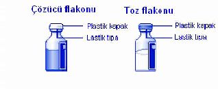 Flakon adaptörünü koruyucu kılıfından çıkarmadan, koruyucu kağıdını kaldırınız. Flakon adaptörünü çözücü flakonuna takınız. Taktıktan sonra, koruyucu kılıfını çıkarınız. Flakon adaptörünün ucuna dokunmamaya dikkat ediniz. İğne kullanıyorsanız, iğneyi koruyucu kılıfından çıkarmadan paketinden çıkarınız. İğneyi enjektöre sıkıca vidalayınız.