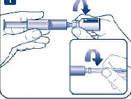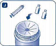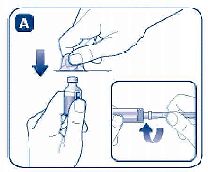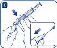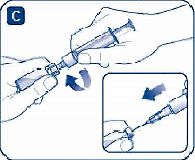 Enjektörü, çözücü flakonunun üzerindeki flakon adaptörüne sıkıca vidalayınız. İğne kullanıyorsanız, koruyucu kılıfını çıkarınız ve iğneyi çözücü flakonunun lastik tıpasına sokunuz. İğnenin ucuna dokunmamaya dikkat ediniz. Belirgin bir direnç hissedinceye kadar pistonu iterek flakonun içine hava enjekte ediniz.