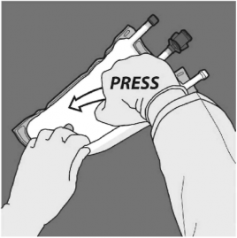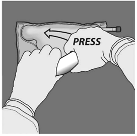 Basamak: Daha sonra aynı işlem, amino asit ve glukoz çözeltilerini içeren odacıklar arasındaki separatör tümüyle açılana kadar bu defa daha önce baskı uygulamış elle torba D askısına doğru katlanırken, torbayı katlamak için kullanılan elle baskı uygulanmalıdır.