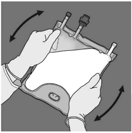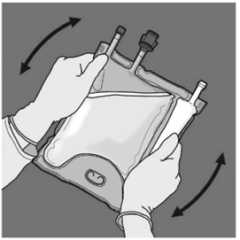 Basamak: İçeriğin tümüyle karışmasını sağlamak için torba en az üç defa alt-üst edilmelidir. Karışımın görüntüsü berrak, renksiz ya da hafifçe sarı renkte olmalıdır.