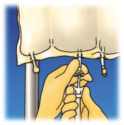 - İğneyle enjeksiyon ucuna girilerek uygulama gerçekleştirilir.