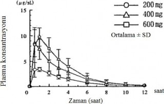 Şekil 1: Aç karnına alınan tek bir dozun ardından plasma konsantrasyonları