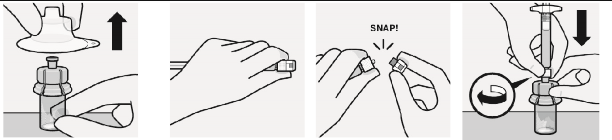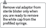 Enjektör, beyaz manşondan tutulur, ardından ucu, flakon adaptörünün luer açıklığına takılır. Cam enjektör silindiri tutulmaz. Bu, beyaz manşonun gevşemesine veya çıkmasına neden olur.