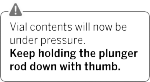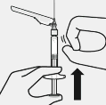 Süspansiyon enjektöre aktarılır Flakon tamamen ters çevrilir. Tüm içeriği flakondan enjektöre çekmek için piston çubuğu yavaşça aşağı doğru çekilir.