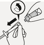 Enjektördeki beyaz manşonu tutarak, enjektör sert bir saat yönünde dönme hareketiyle tam oturana kadar iğne luer bağlantısına takılır.