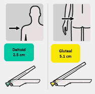 Enjekte edilir Enjektörün tüm içeriği intramuskuler olarak (IM) hastanın gluteal veya deltoid kasına derhal enjekte edilir. Gluteal enjeksiyon, gluteal alanın üst dış çeyreğine yapılmalıdır.