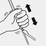 Piston çubuğu tutularak, gösterildiği gibi en az 10 saniye şiddetli bir şekilde çalkalanır.