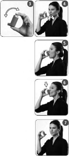 5, 6 ve 7. aşamalarda acele etmeyiniz. İnhalerinizi kullanmadan önce mümkün olduğu kadar yavaş nefes almaya başlamanız önemlidir. İlk kullanmaya başladığınız zamanlarda birkaç kez ayna önünde pratik yapınız. İnhalerin tepesinden veya ağzınızın kenarından sis çıktığını görürseniz 2. basamaktan itibaren işlemleri tekrarlayınız.