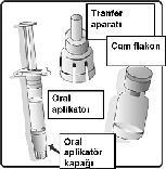 Pistonlu tıpa ve koruyucu üst kapak ile 1 ml çözücü içeren oral aplikatör (tip I cam) Kullanıma hazırlamak için transfer aparatı (1/doz)