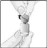 1. Toz içeren cam flakonun plastik kapağı çıkarılır.