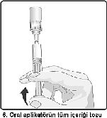 6. Oral aplikatörün tüm içeriği tozu içeren cam flakona nakledilir.