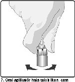 7. Oral aplikatör hala takılı iken, cam flakon çalkalanır ve tozun tamamen süspansiyona