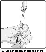 getirilir ve tüm içerik oral aplikatör ile yanak iç bölgesine uygulanır.