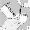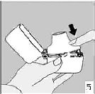 6. ve 7. İnhalasyon cihazını ağızlık parçası yukarıda olacak şekilde tutunuz ve kapağı bastırarak kapatınız.