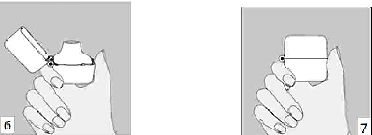 6. ve 7. İnhalasyon cihazını ağızlık parçası yukarıda olacak şekilde tutunuz ve kapağı bastırarak kapatınız.